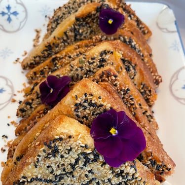 Toast frit au crevettes sésame noir et blanc