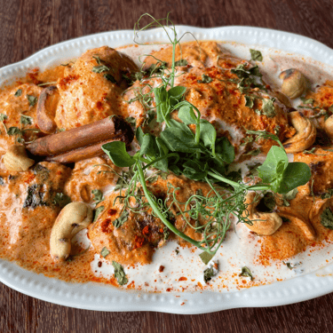 morceaux de poulets marinés aux épices douces, grillés puis mijote dans une sauce onctueuse sauce au beurre et yaourt au saveur douce, crémeuse et légèrement épicé